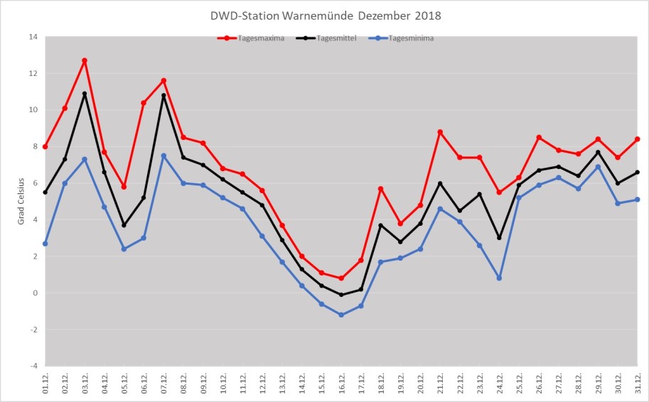 Tiefstes Tagesmittel: -0,1 °C am 16.12.