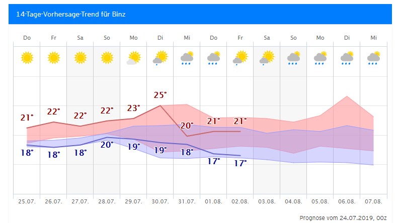 Wer es etwas wärmer mag, sucht sich von Donnerstag bis Sonntag einen Strandabschnitt an der Rostocker Küste, vorzugsweise von Warnemünde bis Graal-Müritz. Hier ist der Seewindeinfluss geringer, Ostwind kommt über Land (Rügen, Darß, Nordvorpommern). Mittags/Nachmittags dann teilweise Drehung auf Nordost und ebenfalls unter 25°C, aber höhere Temperaturen als an der vorpommerschen Küste und Richtung Kühlungsborn sowie im Klützer Winkel.