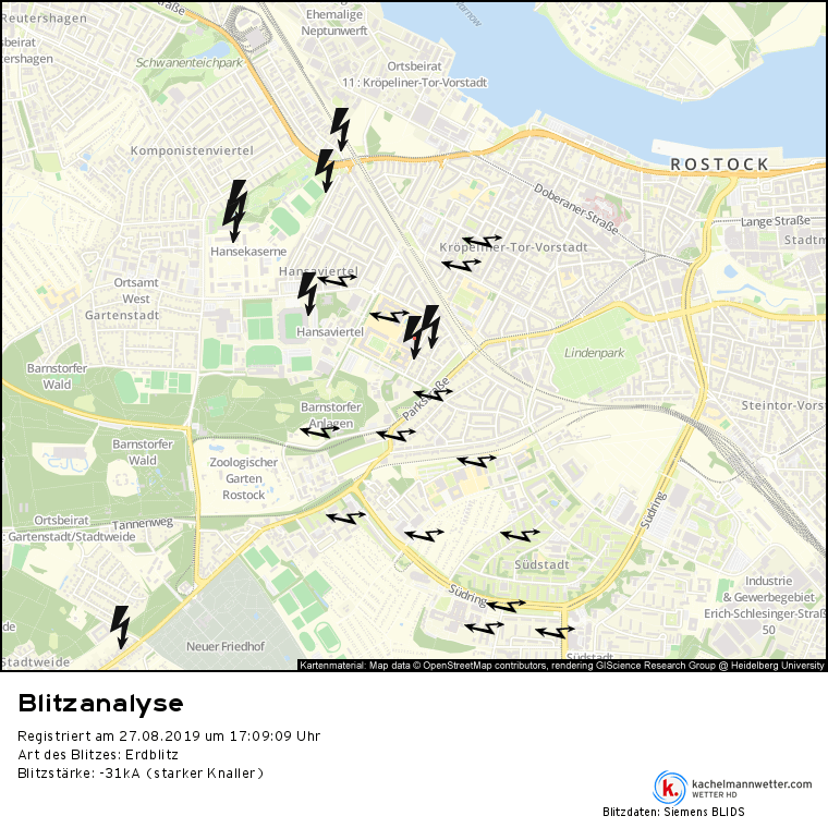 Blitzortung 17:00 bis 17:10 Uhr- Rostock Innenstadt