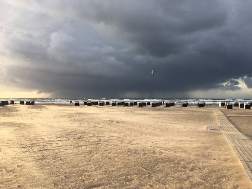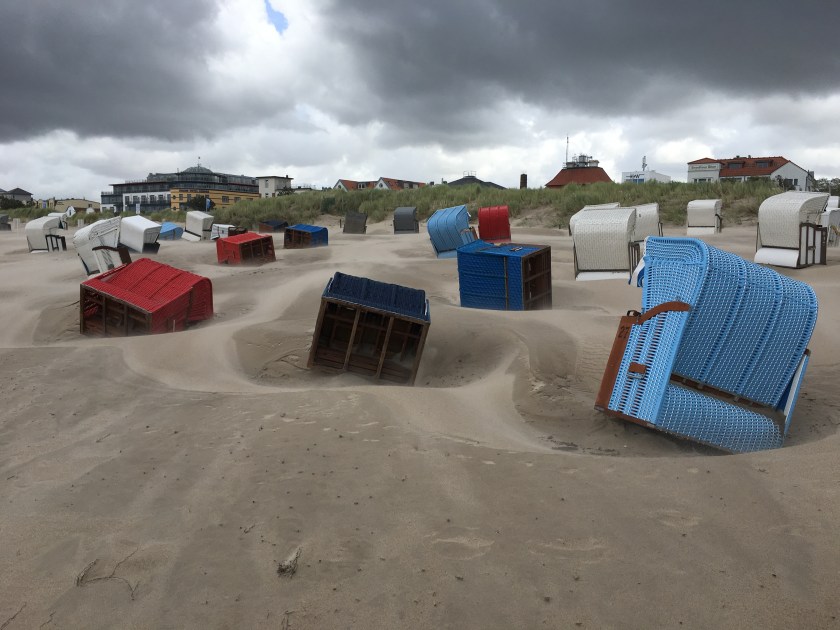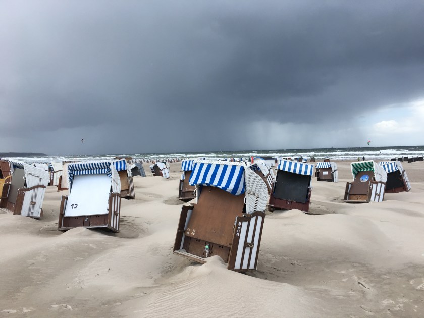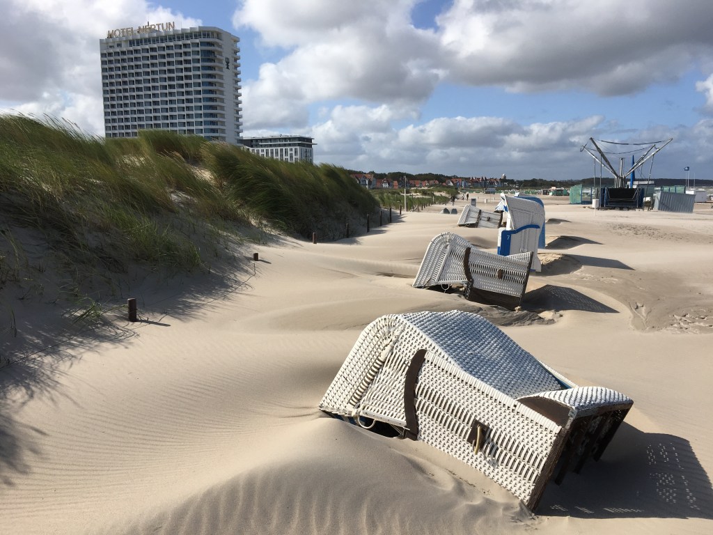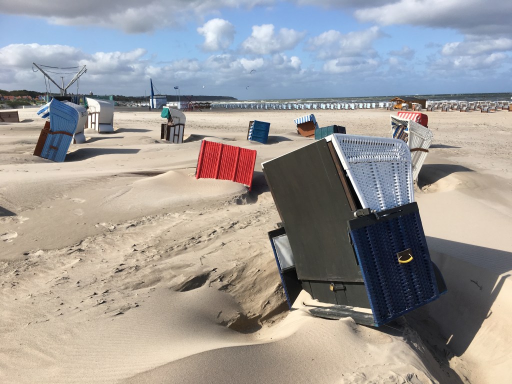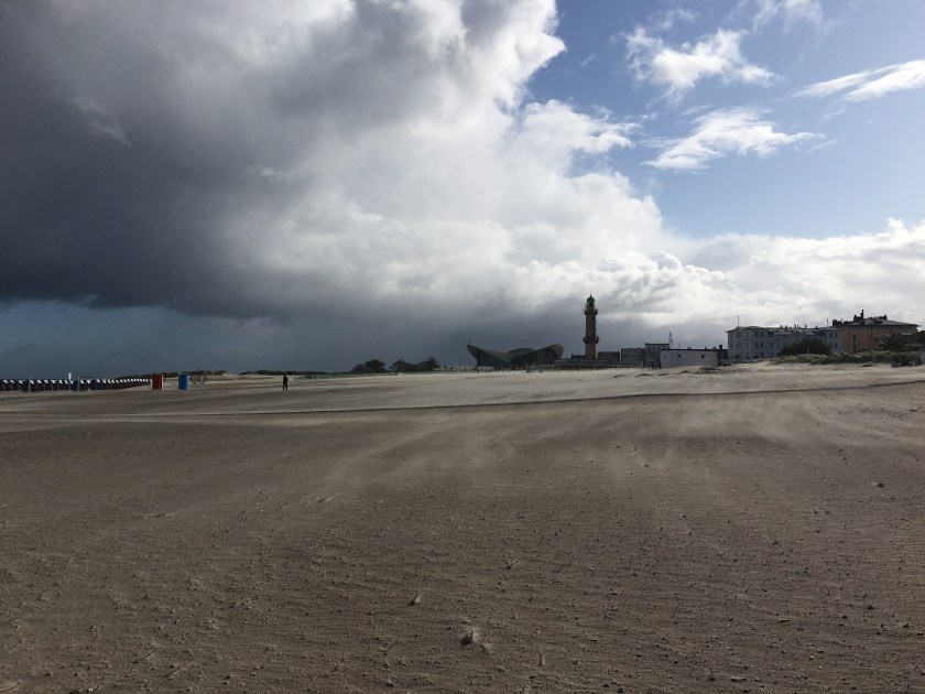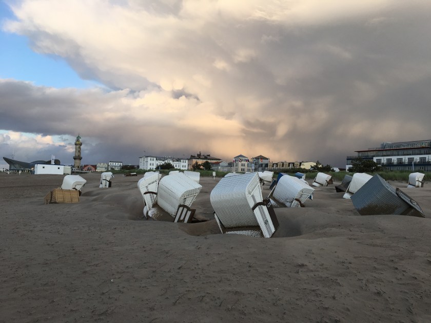 Randtief IGNAZ sorgte am Dienstag für schwere Sturmböen und sogar kräftige Graupelgewitter. In Warnemünde kippten reihenweise Strandkörbe um, der Fährverkehr wurde eingestellt. Wer den Wind aus erster Hand erleben wollte, musste bereits in der Seestraße und an der Mole mit feinem durch die Luft wirbelnden Strandsand vorliebnehmen.