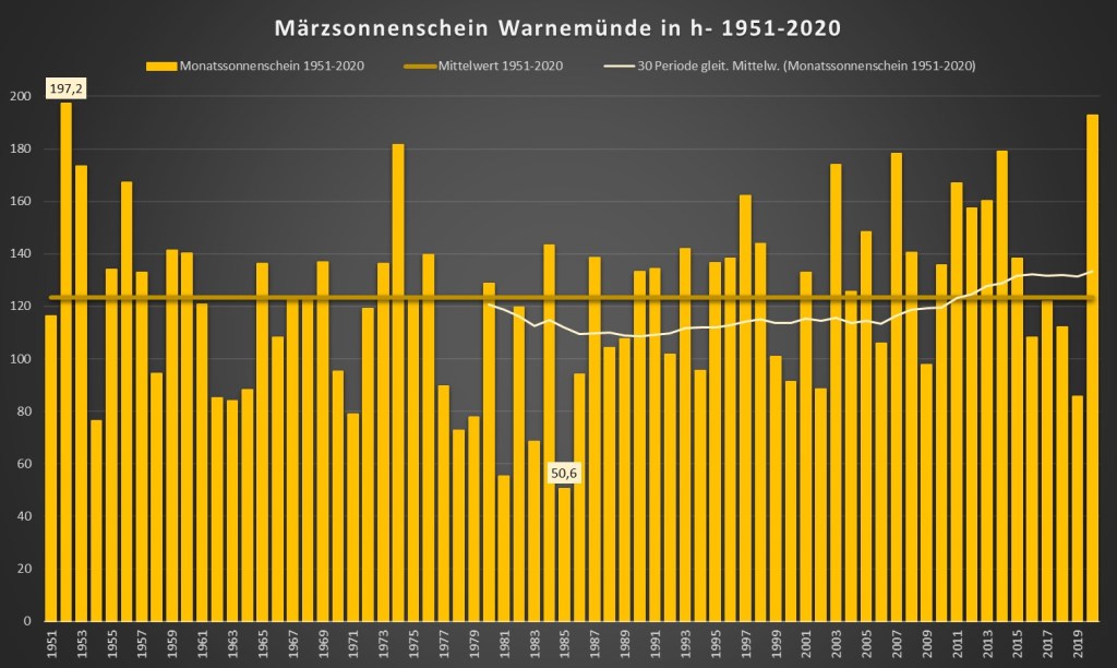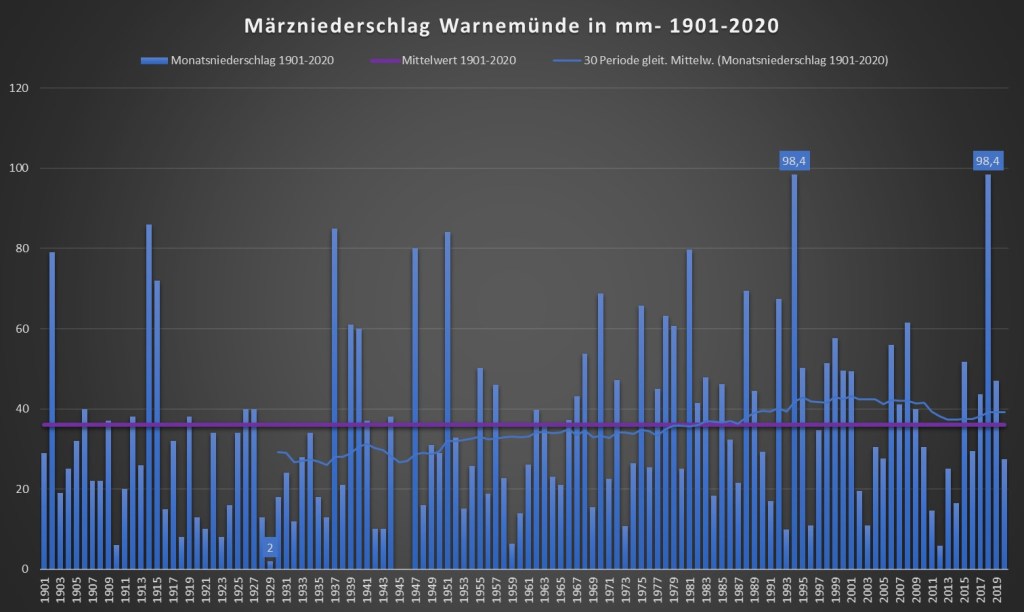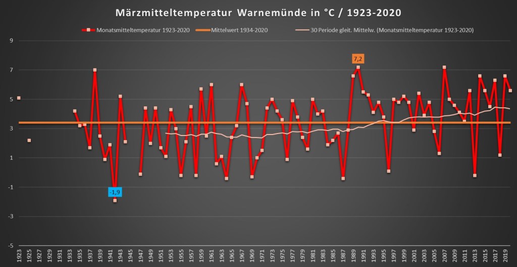 Zeitreihen und Trends zum Monat März in Warnemünde