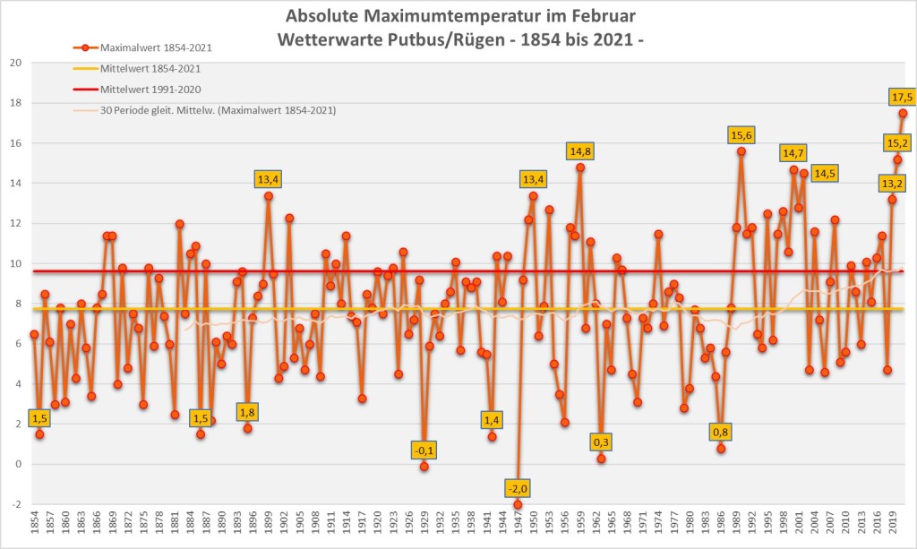 - Putbus/Rügen, Messreihe seit 1853!!! / alter Rekord um 1,9°C überboten!