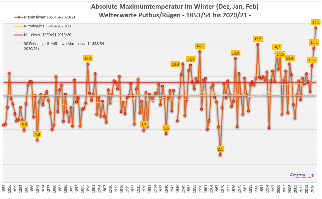 - Putbus/Rügen, Messreihe seit 1853!!! / alter Rekord um 1,9°C überboten!