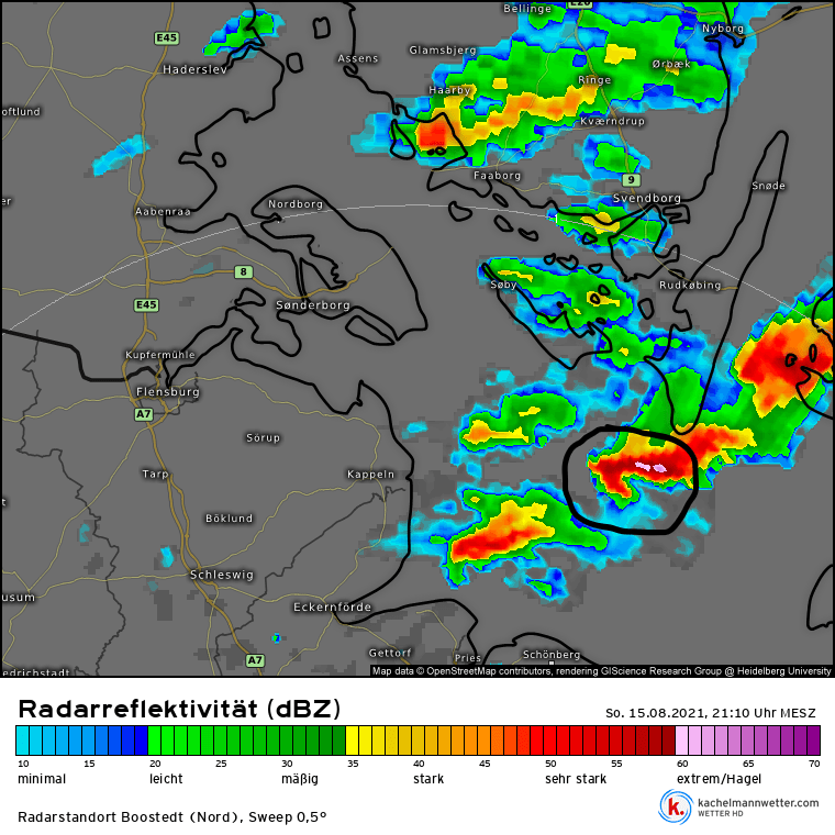 Spektakuläre und in unserer Region seltene Entwicklungen zeigten sich am Abend des 15.08.2021 am Himmel über der Kieler Bucht. Im Vorfeld einer markanten Kaltfrontpassage entwickelten sich im Übergangsbereich zu feuchtwarmer Subtropikluft über Schleswig-Holstein einzelne kräftige Gewitterzellen, welche sich teils zu sogenannten Superzellen formierten.