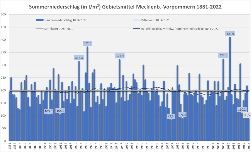 Im Folgenden die Liste der 7 trockensten Sommer in MV seit 1881: