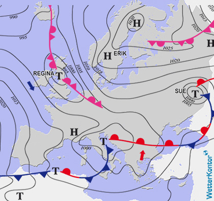 Wetterlage am Freitag, 18.11.2022 / An der Südflanke von Hoch ERIK über Skandinavien floss polare Kaltluft von Russland und dem Baltikum über Polen bis nach Mecklenburg-Vorpommern.