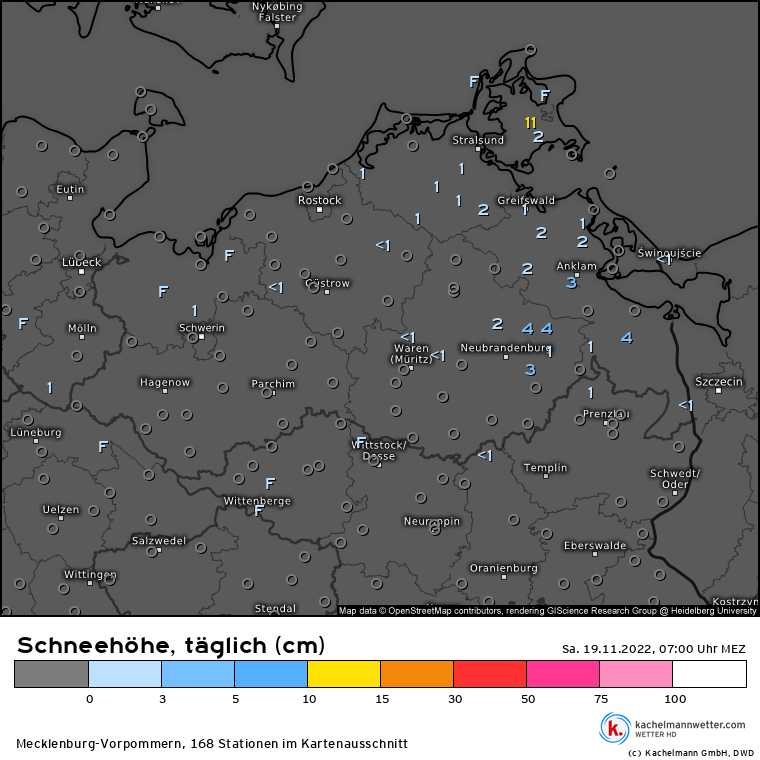 Schneehöhen-Meldungen am 19. November 2022 in MV