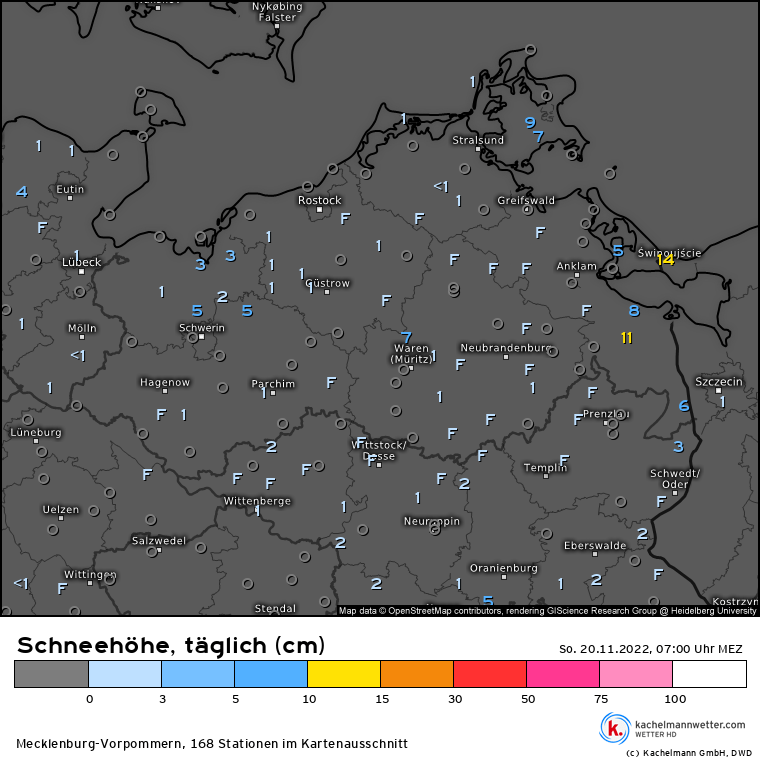 Schneehöhen-Meldungen am 20. November 2022 in MV