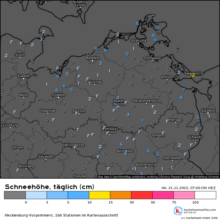 Schneehöhen-Meldungen am 21. November 2022 in MV