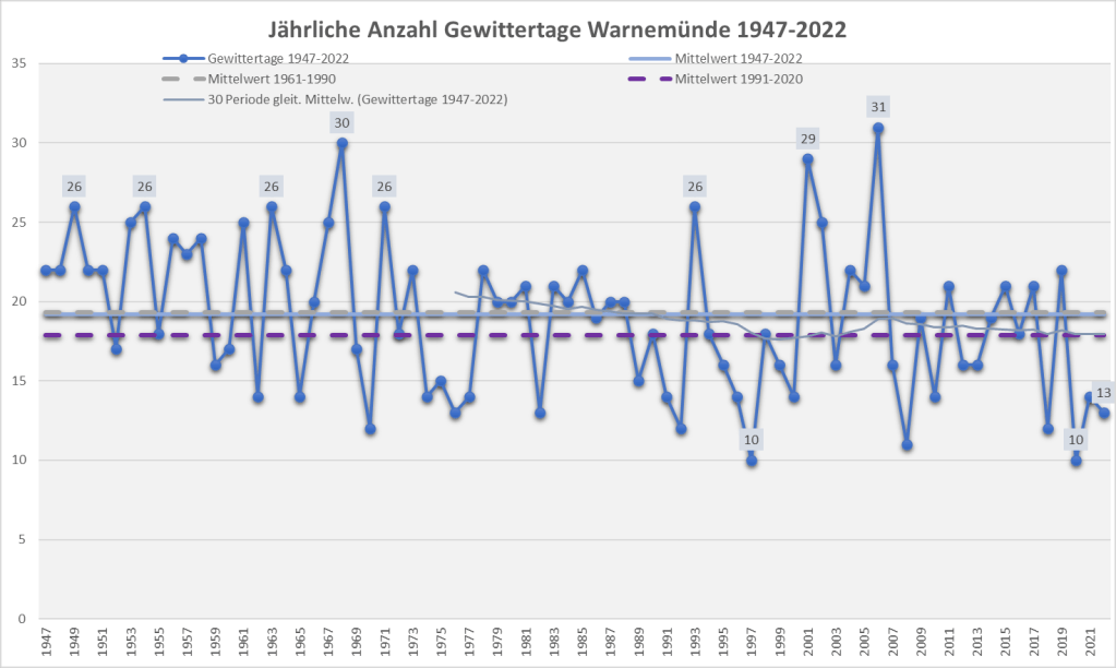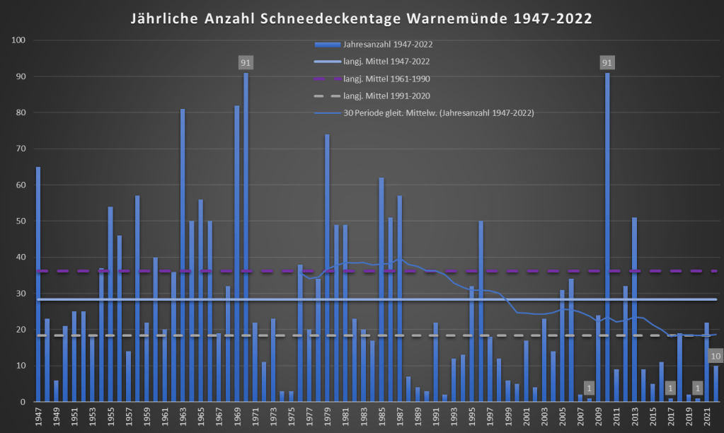 3. Klimareihen von Warnemünde- aktualisiert mit den 2022er-Jahreswerten