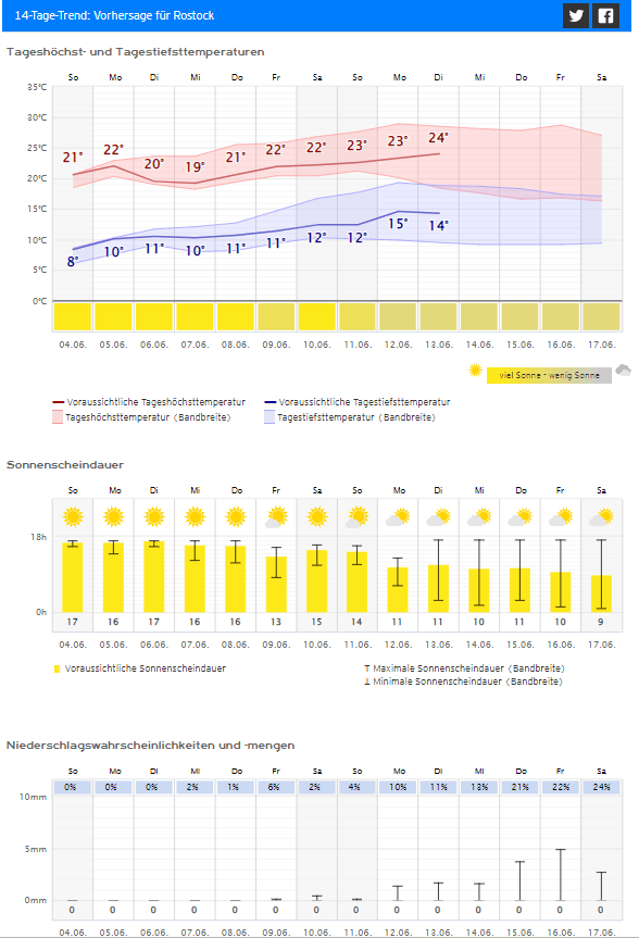 Man kann fast von Glück reden, dass die Temperaturen sich im April und Mai im durchschnittlichen Bereich bewegten und es auch einige ziemlich kühle Phasen gab. Bisher hat es je nach Region innerhalb von MV maximal 2 Sommertage mit Werten von mindestens 25°C gegeben. Teilweise in Vorpommern sowie abschnittsweise an der Küste hat es noch gar keinen Sommertag gegeben.