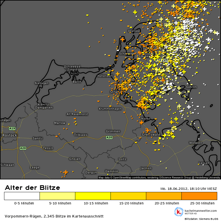 3) Blitze auf Rügen zwischen 17:40 und 18:10 Uhr