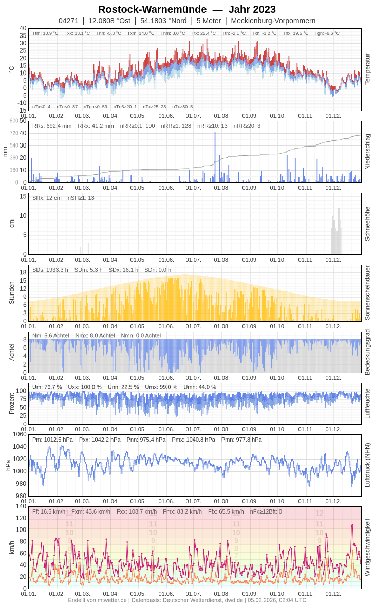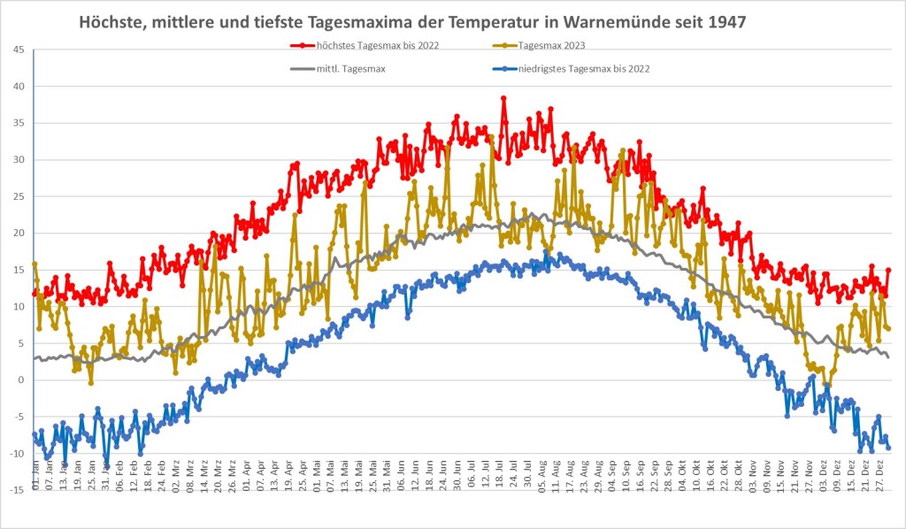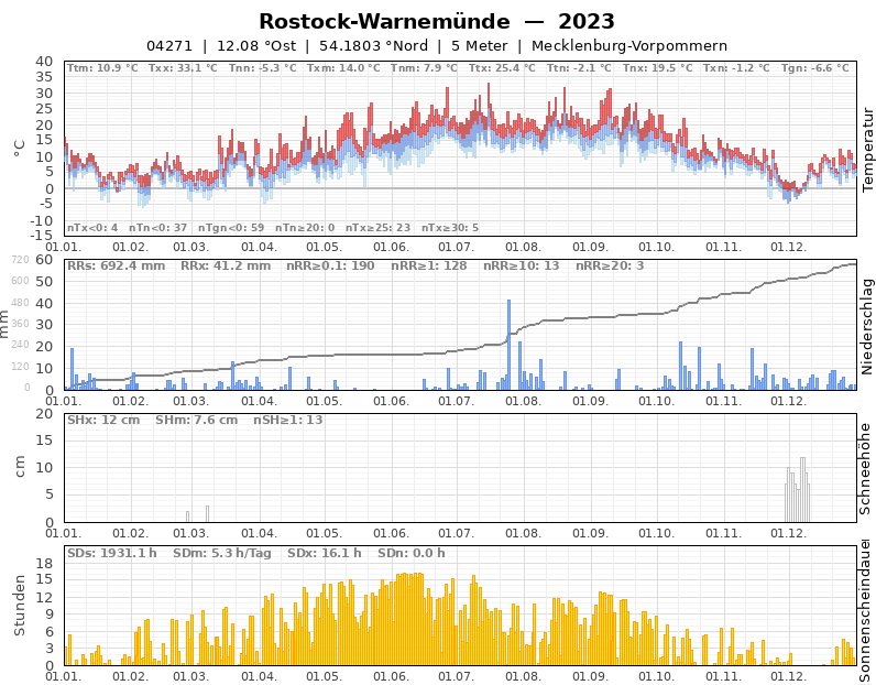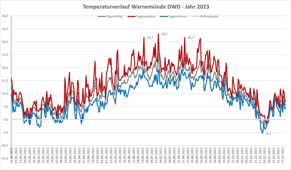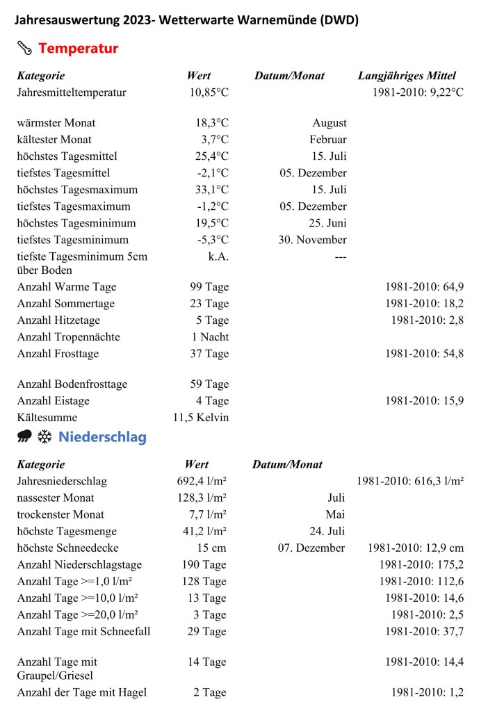 Mess- und Beobachtungsdaten zum Jahr 2023 / Wetterwarte Warnemünde