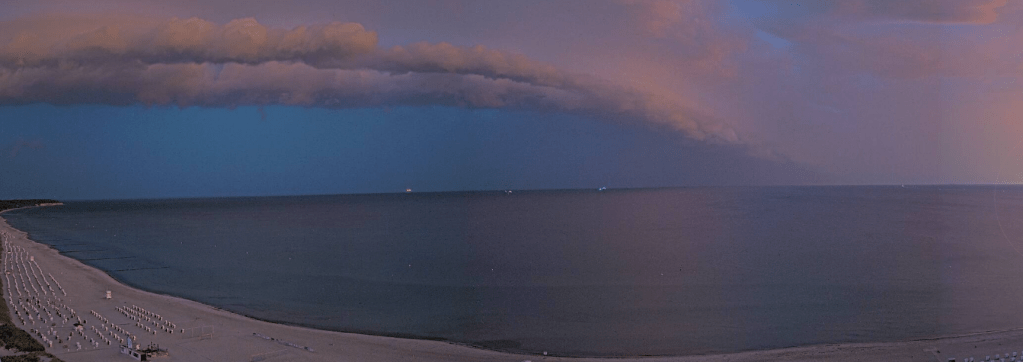 Eine für die Jahreszeit ungewöhnliche Sturmwetterlage sorgte zu Beginn der 2. Augustwoche für kräftige Regenfälle, starken Wind, hohen Seegang und somit klassisch ungemütliches „Schietwedder“ mitten in der besten Urlaubszeit. In Warnemünde erreichte die Spitzenböe 81 km(h (Bft 9), der Mittelwind aus West schaffte es auf 63-64 km/h (Bft 8). Insgesamt kam es doch deutlich glimpflicher als viele Modellszenarien wenige Tage vorher berechneten. Orkanartige Böen erschienen denkbar. Nennenswerte Schäden traten letztendlich nicht auf.