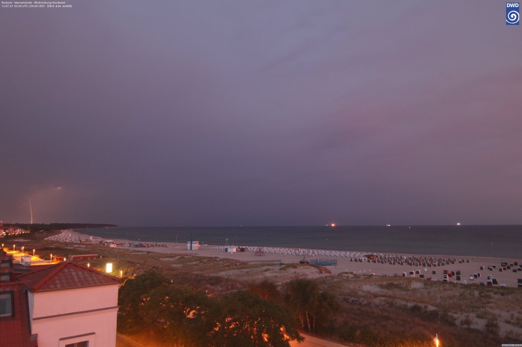 In feuchtlabiler Luftmasse und bei recht schwachen Luftdruckgegensätzen entwickelten sich auf der Vorderseite des Skandinavientiefs UNAI am gestrigen Montag (24. Juli 2023) einige markante Gewitter über Mecklenburg-Vorpommern. Das stärkste Ereignis traf ausgerechnet genau die Rostocker Küste. Zwischen 19:00 und 20:30 Uhr fielen 30 bis punktuell 40 l/m² im Bereich Warnemünde, Diedrichshagen und Elmenhorst. Die Folge waren kleinere Überschwemmungen, einzelne vollgelaufene Keller sowie Wassereinbruch in Untergeschoss-/Souterrainwohnungen.
