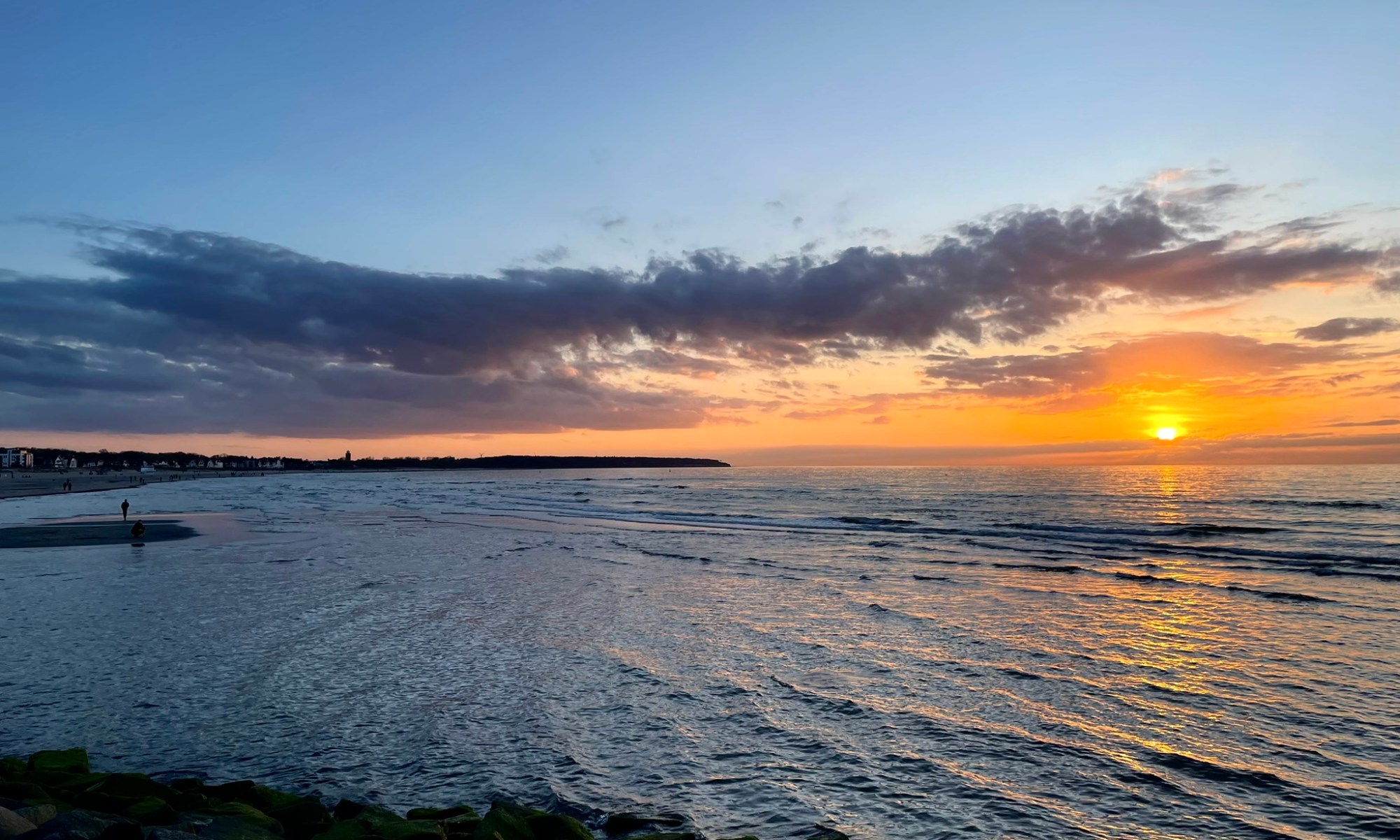 Kurioserweise Anfang Januar, wie schon häufiger in den vergangenen Jahren (z.B. 2017, 2019), ereignete sich nach Durchzug eines Sturmtiefs ein Hochwasser. Nach anfänglich kräftigen Südwestwinden drehte die Strömung rückseitig abrupt auf Nord/Nordost. Das Wasser schwappte zurück (Badewanneneffekt). Der maximale Wasserstand in Warnemünde erreichte 1,23 m über normal am 04. Januar. Damit wurde knapp die mittlere Sturmflutkategorie verpasst (ab 1,25 m).