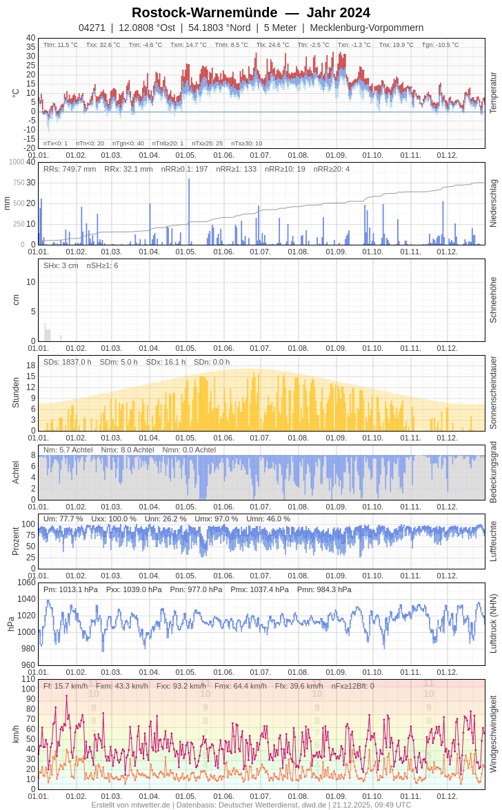 Mess- und Beobachtungsdaten zum Jahr 2024 / Wetterwarte Warnemünde