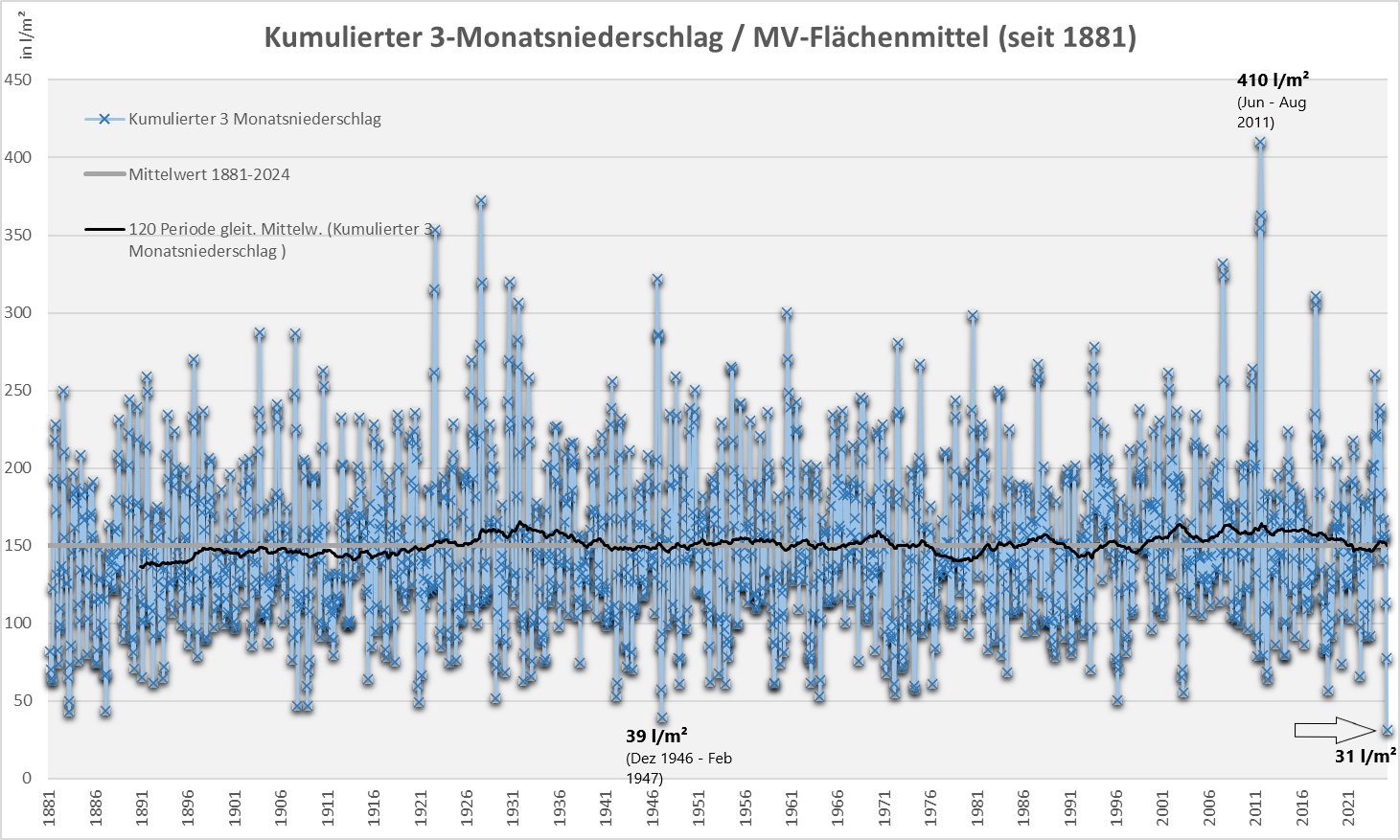 Im diesjährigen Frühjahr dominiert aus wettertechnischer Sicht ein Thema: Die rekordträchtige andauernde Trockenheit. Seit Anfang Februar hat es im Flächenmittel von Mecklenburg-Vorpommern lediglich etwa 31 l/m² Niederschlag gegeben. Nach langjährigem Durchschnitt wären vom 01.02.-30.04. 115-120 l/m² zu erwarten, das Defizit ist also enorm. Der nun mit dem April zu Ende gehende 3-Monatszeitraum ist sogar der … Trockenheit dauert an – seit Anfang Februar regional nur 15 l/m² – neuer Minimumrekord für 3-Monatszeitraum weiterlesen