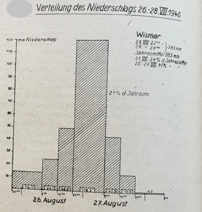 1. Toller Bericht! Aus welcher Quelle stammen eigentlich diese 290 mm, die im August 1946 in Kirchdorf auf der Insel Poel gefallen sein sollen? Denn laut SBZ-Jahrbuch und auch DWD-Metadaten wurden die Niederschlagsmessungen auf Poel erst im Oktober 1946 wieder aufgenommen (nach 18 Monaten kriegs- und nachkriegsbedingter Unterbrechung).