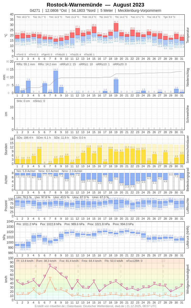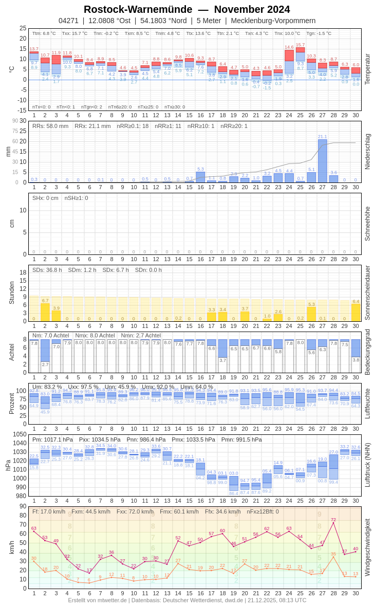 | 21. | 9.8 | 13.3 | 7.8 | 7.2 | 0.0 | 0.5 | 11.3 | 3 | WSW |