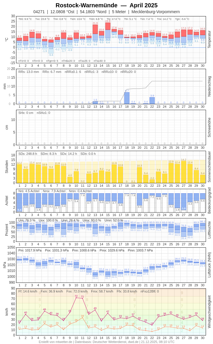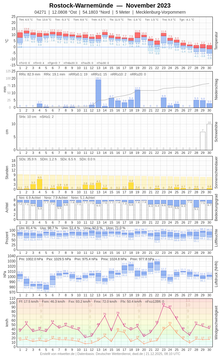 | 29. | 19.4 | 23.8 | 13.9 | k.M. | -.- | 16.0 | 7.3 | 2 | NW |