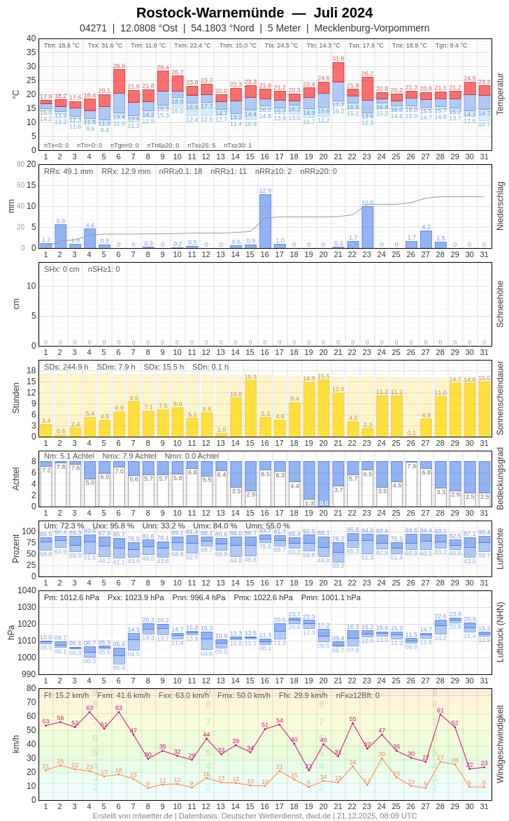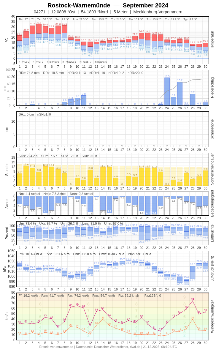 | 28. | 17.2 | 19.4 | 15.7 | k.M. | -.- | 11.3 | 12.0 | 3 | WNW |