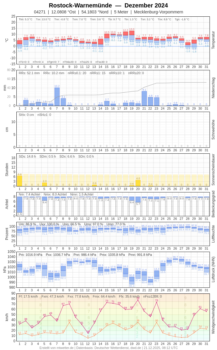 | 13. | 6.3 | 8.2 | 4.3 | 3.1 | 2.7 | 0.8 | 17.5 | 4 | SSW |