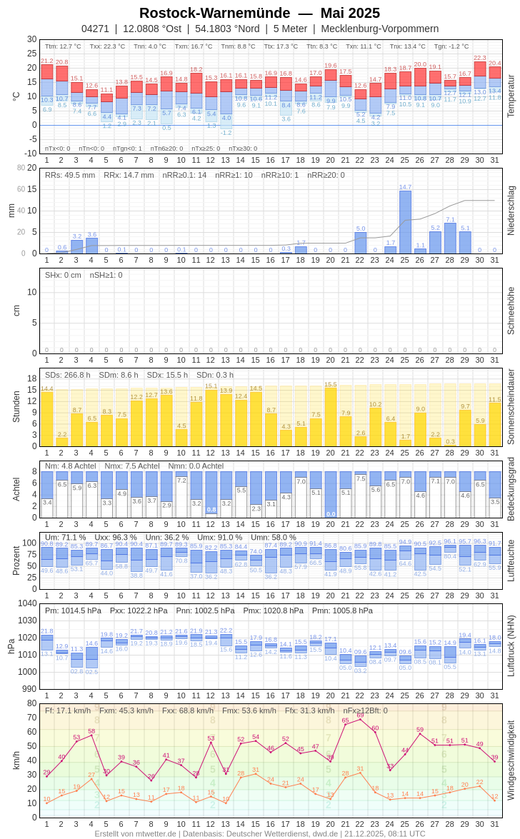| 22. | 11.8 | 13.3 | 10.7 | 9.0 | 0.1 | 1.8 | 14.1 | 5 | WNW |