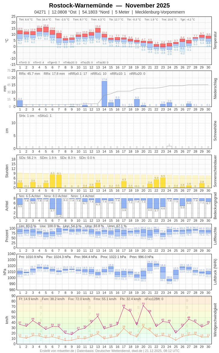 | 27. | 16.7 | 18.8 | 14.5 | k.M. | -.- | 7.2 | 16.7 | 6 | NW |