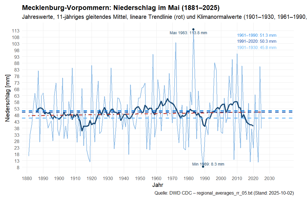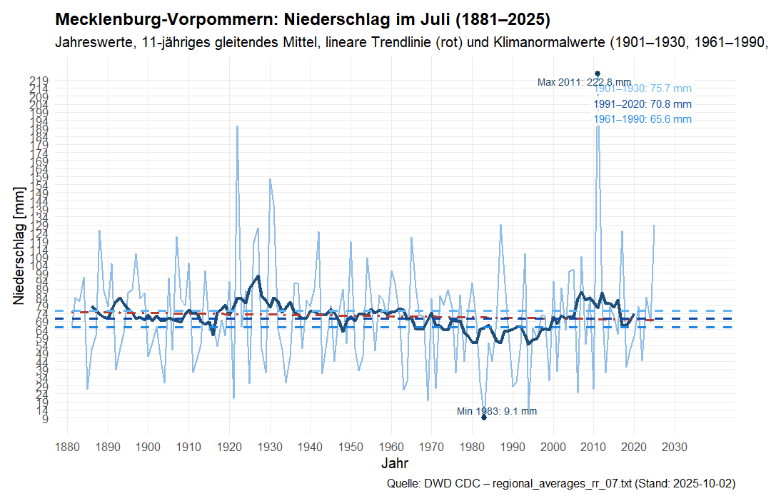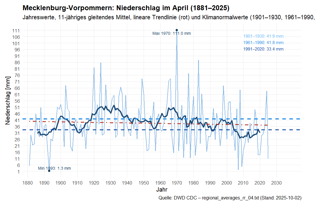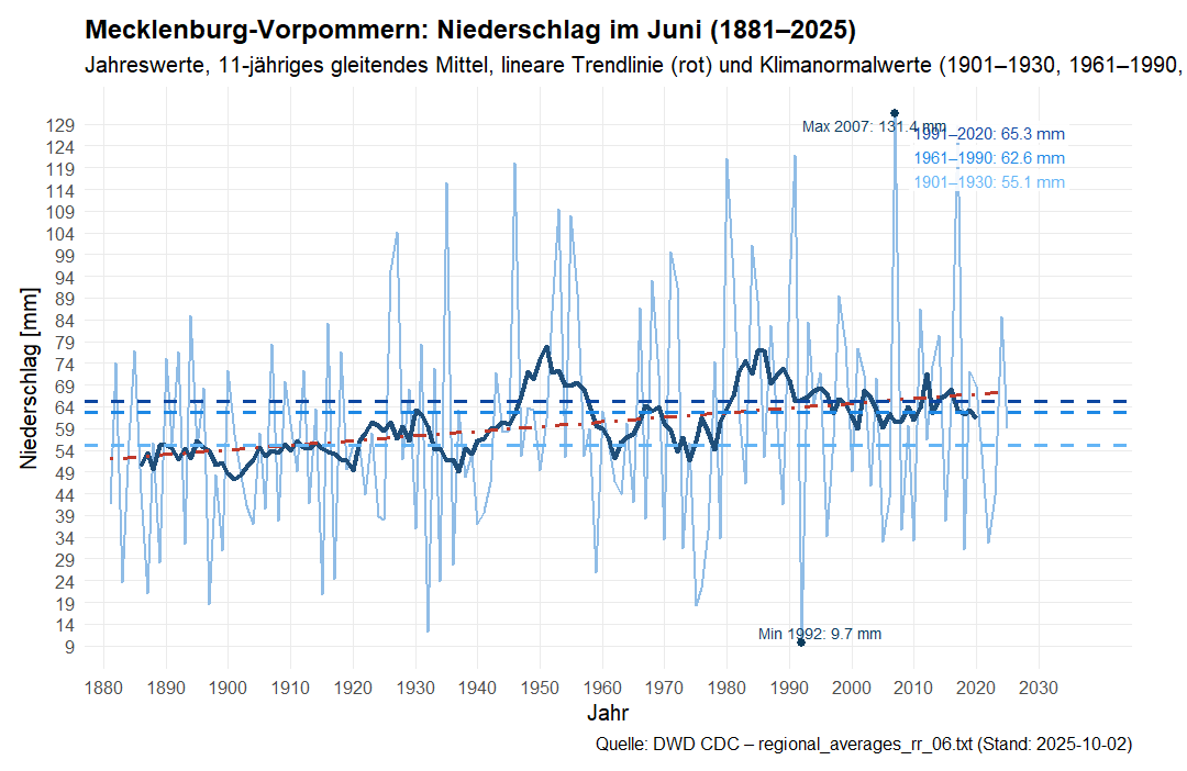 Monatsniederschlagssumme Mecklenburg-Vorpommern – Zeitreihen seit 1881