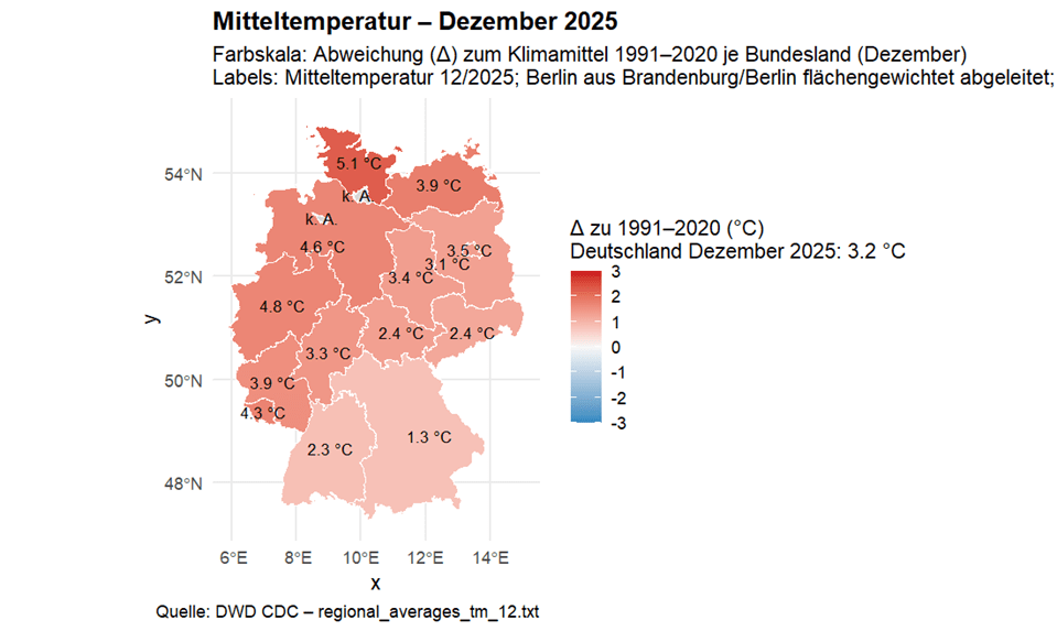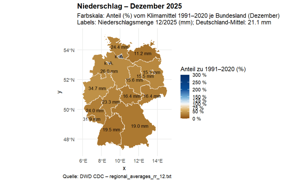 Flächenmittel Temperatur / Niederschlagsmenge und Abweichung zum Klimamittel 1991-2020