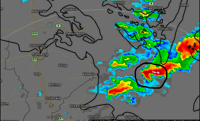 Lehrbuchhafte Superzellen über der Ostsee und Süddänemark in den Abendstunden des 15. August 2021- mehrere Tornados