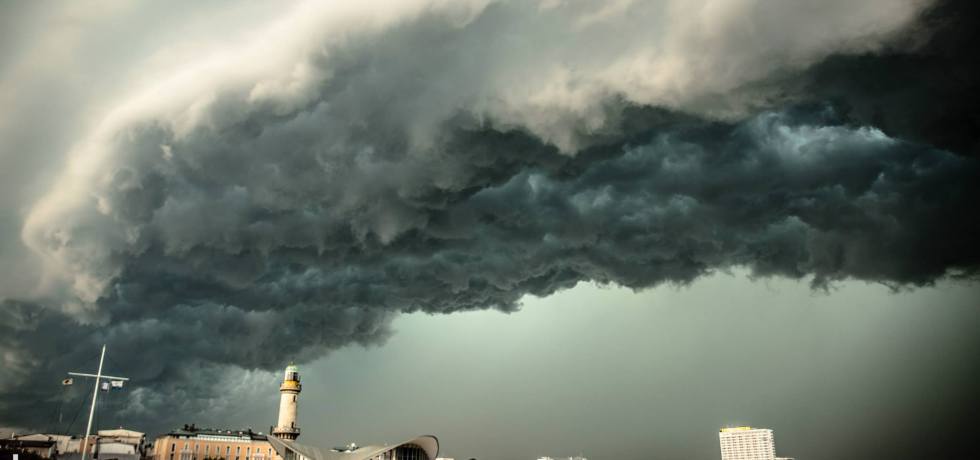 Jahrestag / 08.06.2014: Imposante Gewitterfront mit Shelf Cloud über Warnemünde