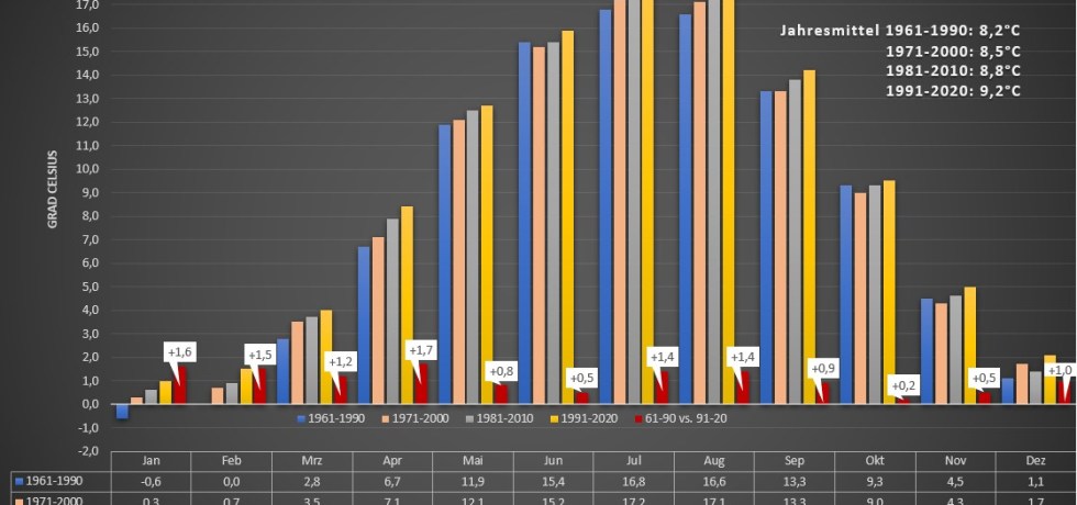 Entwicklung der Klima-Referenzperioden für Mecklenburg-Vorpommern / Temperatur, Niederschlag und Sonnenschein