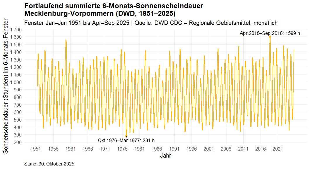 - Summierte 6-Monatssonnenscheindauer (seit 1951, fortlaufend)