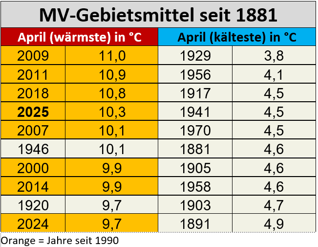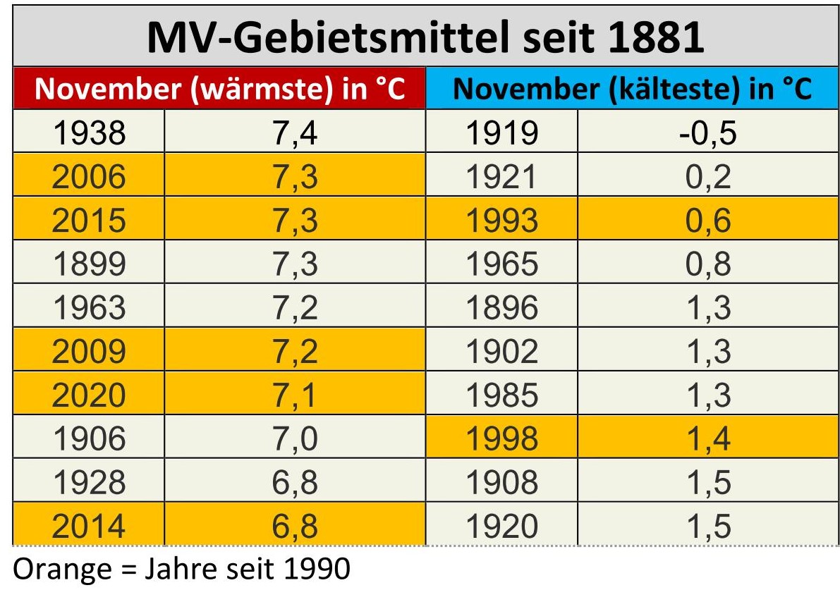 Hitlisten – Die 10 wärmsten und kältesten Monate / Jahreszeiten -seit 1881 (aktualisiert im November 2025)