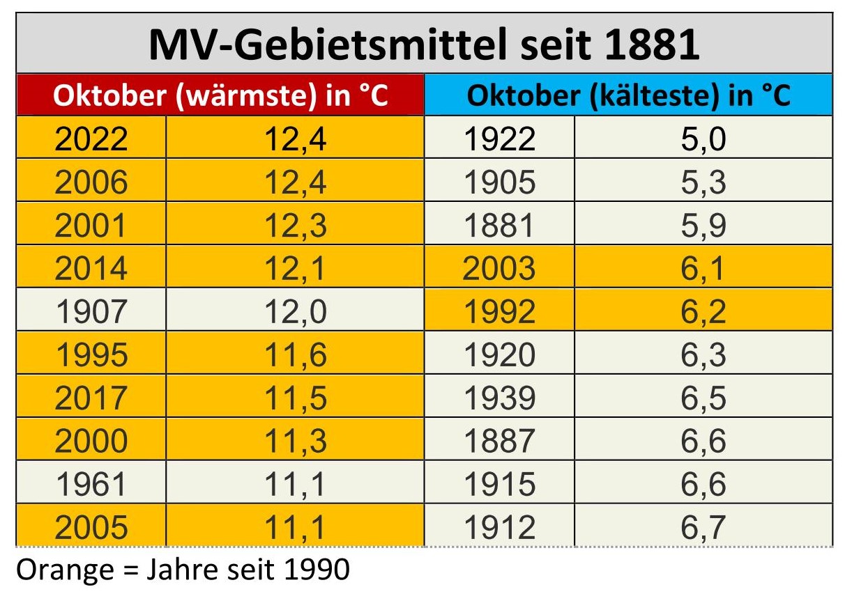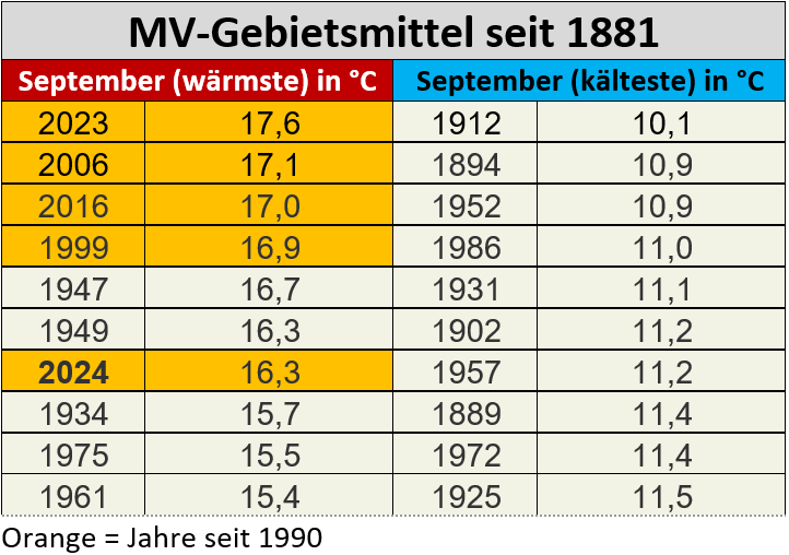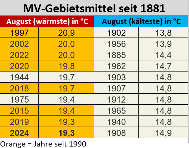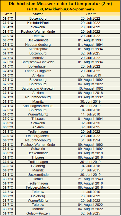 (* 39,3°C Zinnowitz (10.08.1992),* 38,7°C Teterow (09.08.1992),* 38,6°C Teterow (01.08.1994))