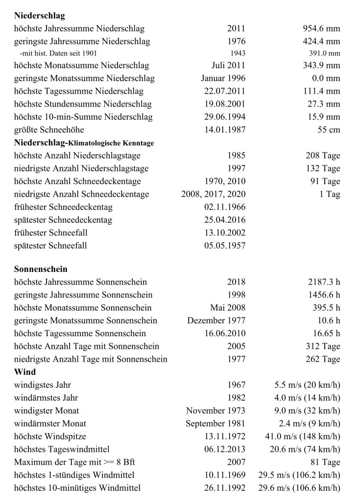 (Temperaturmittel und Niederschlagsmengen bereits seit 1901)